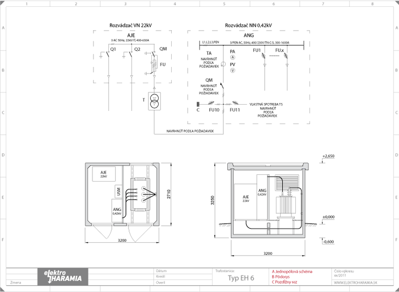 Max. veľkost transformátora: do 1250 kVA, (2 x 1600 kVA)